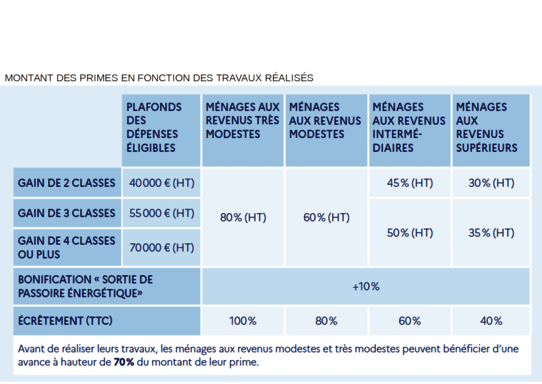 Pour pouvoir prétendre aux aides de l’Anah, la rénovation devra permettre un minimum de 2 sauts de classe du DPE.